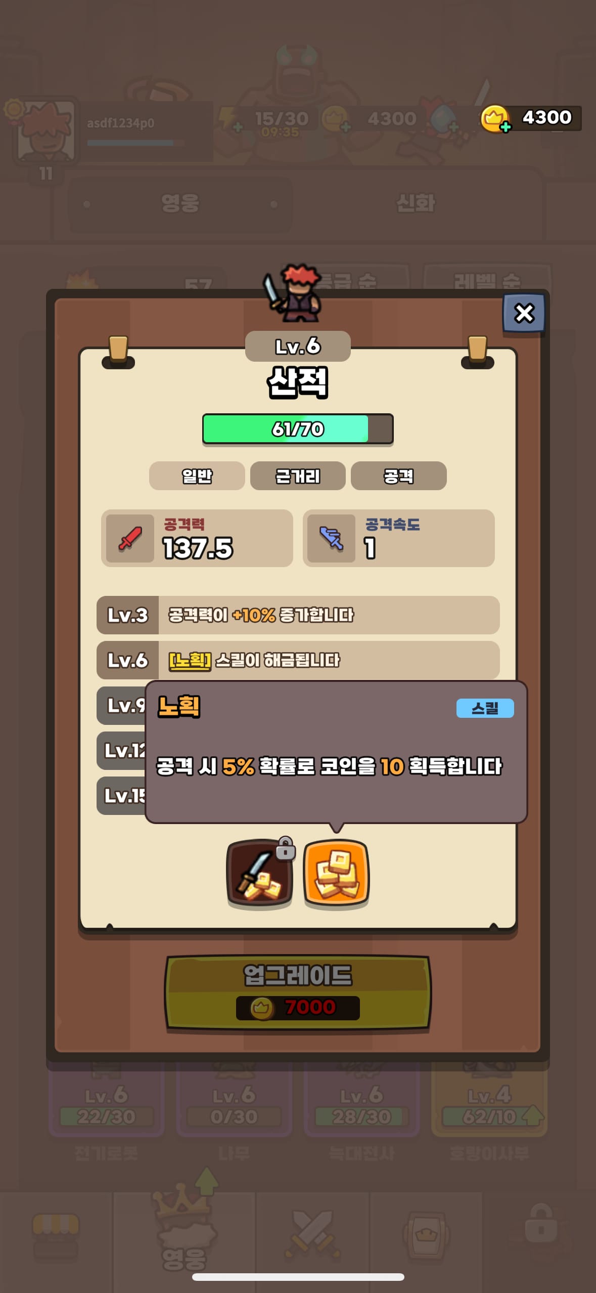 산적 6렙 먼저 찍으세요! 산적 6렙을 찍어야 돈이 모이고 겜 운영이 가능해집니다!