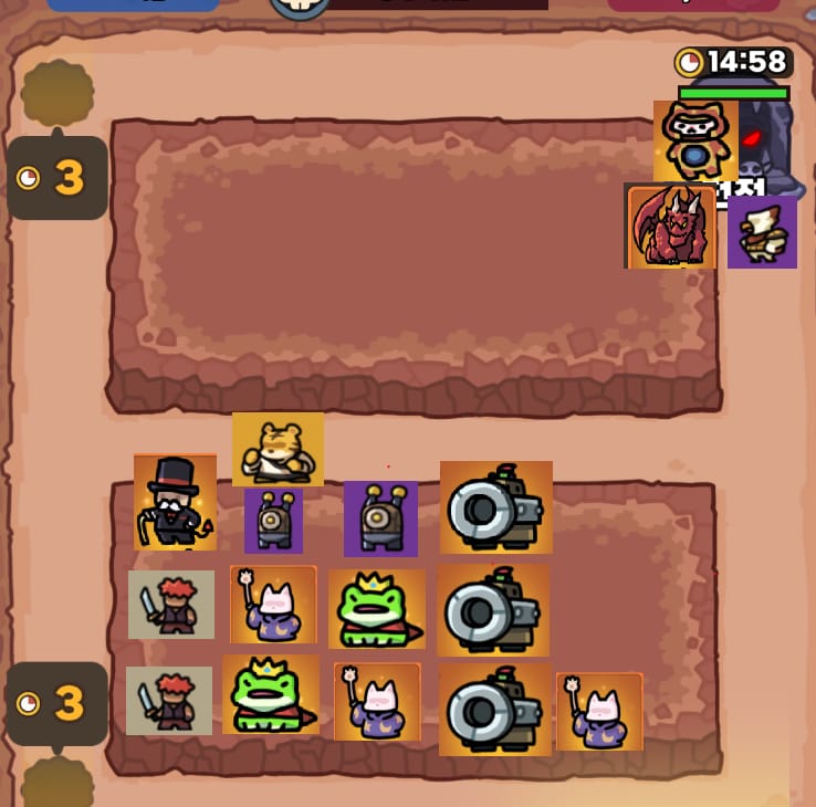 * 전기로봇 12Lv & 팀 내에 냥법사 12Lv 이 있다면 전기로봇은 한 칸(Max 3마리)만