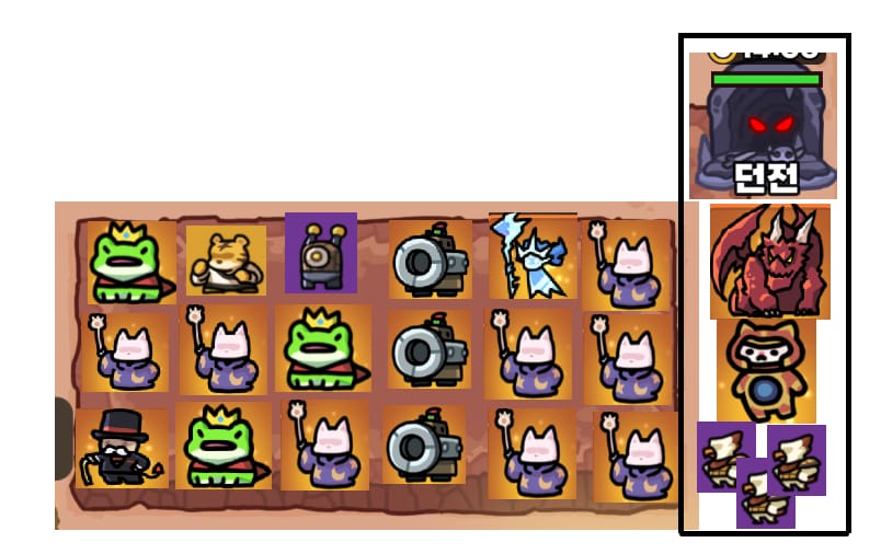 소환하면 패시브로 아군에게 버프를 주는 유닛들은 자리 차지 않게 던전에 박아주세요.