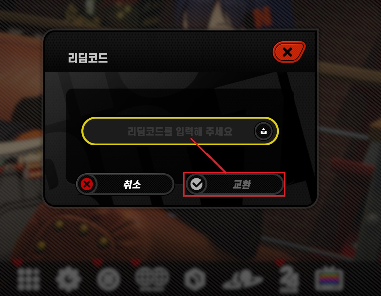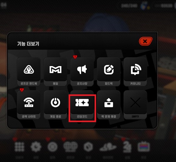 - 더보기를 누른 뒤 '리딤코드' 선택합니다