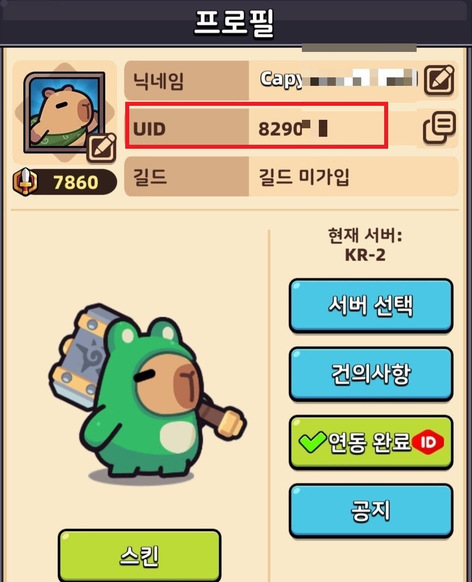 - 게임접속 후 좌측상단 초상화 클릭 → 프로필에서 자신의 UID를 확인