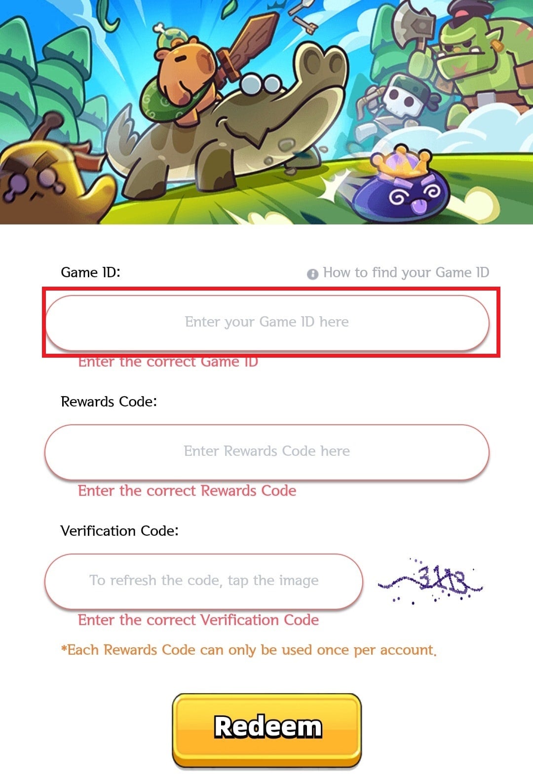 - 게임 아이디 (UID), 쿠폰 등을 모두 입력후 Redeem을 누릅니다.