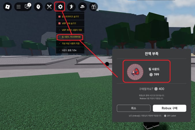 3. 199 로벅스를 사용하여 "킬사운드" 팩을 구매하세요 .