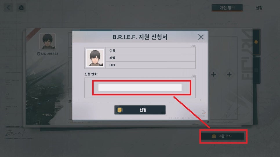 3. 우측 하단 [교환 코드]를 눌러 코드 입력