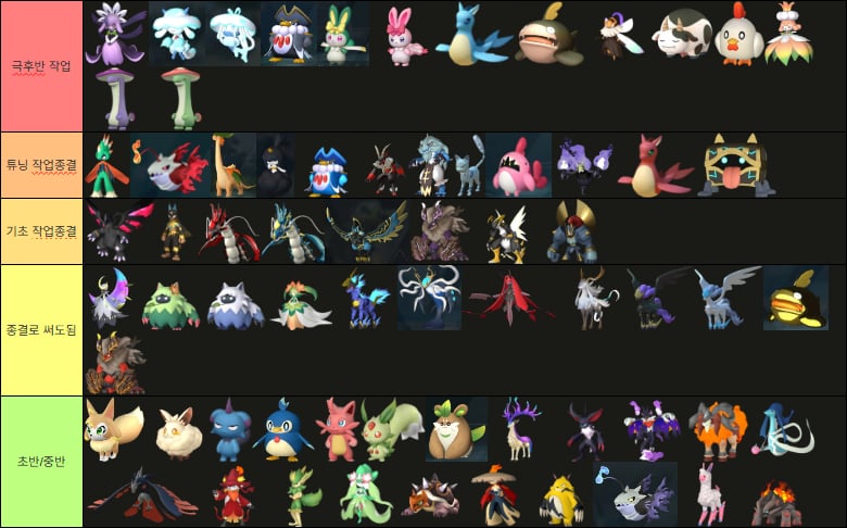 ✅기초 작업종결과 비슷하지만, 응용학 투자나 세부 성능에서 최신 메타에 다소 밀리는 팰들. 그래도 상황에 따라 충분히 실전 투입 가능한 준종결급.