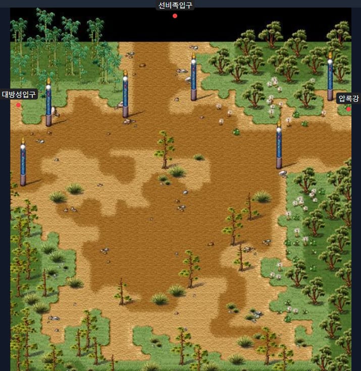 좌표: 대방성 (88. 32), 낙양성 (21. 40), 현도성 (24. 125)