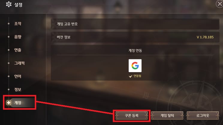 ※ 주의사항: 확실히 쓸 계정 아니면 쿠폰 등록 금지 (리세 후 쿠폰 등록이 안될 수 있음)