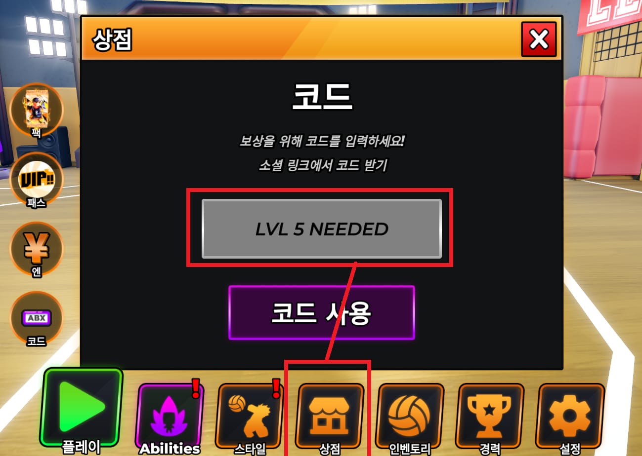 배구 전설 코드 입력 방법