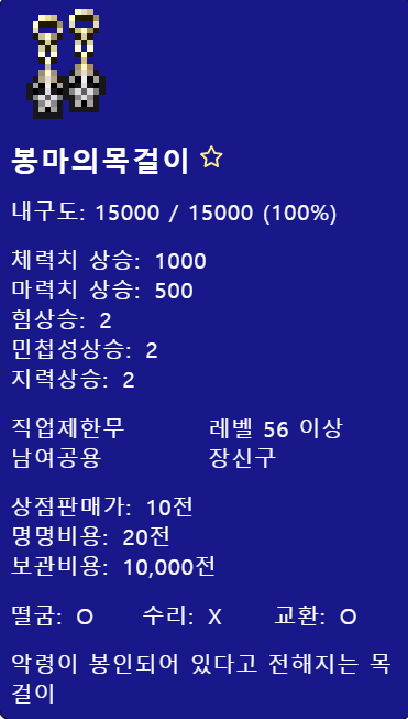 - 요구 아이템: 황금의문서 10장 (991~1000층 보스 몬스터 드롭)