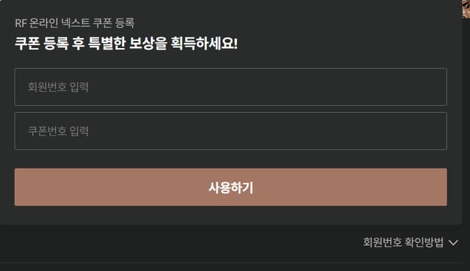 RF 온라인 넥스트 쿠폰 입력방법