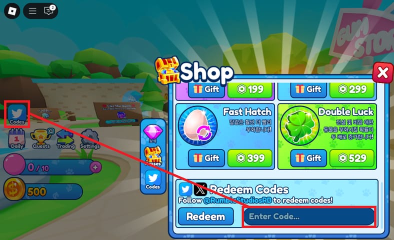 버블껌 시뮬레이터 인피니티 코드 입력 방법