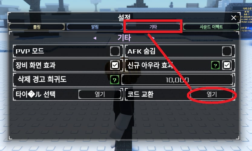 3. 기타 탭에서 → 코드교환 열기를 클릭