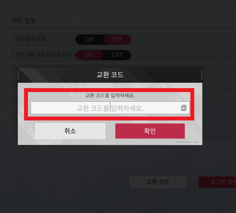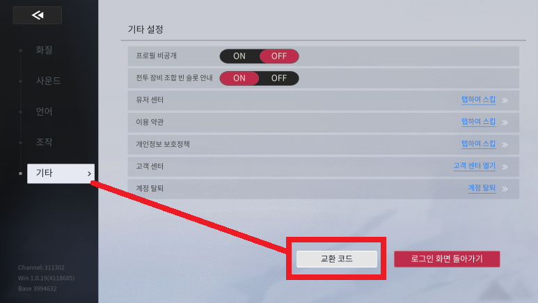 3. [기타]메뉴에서 [교환 코드]버튼을 클릭.