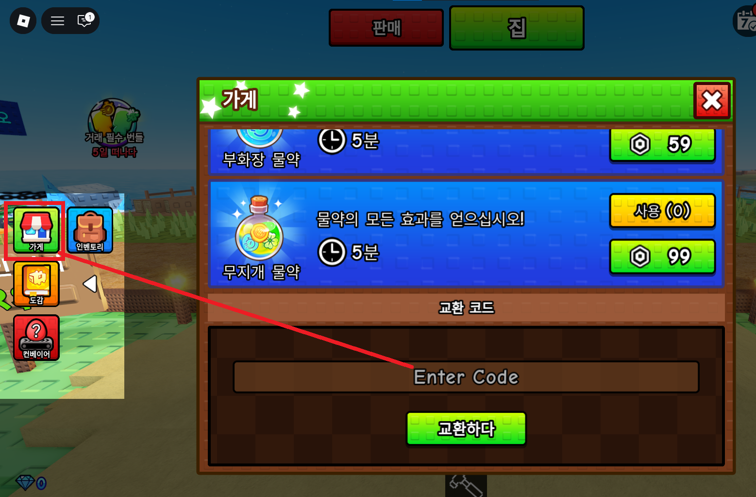3. 코드 입력란에 복사 붙여넣기 한 뒤 교환하기