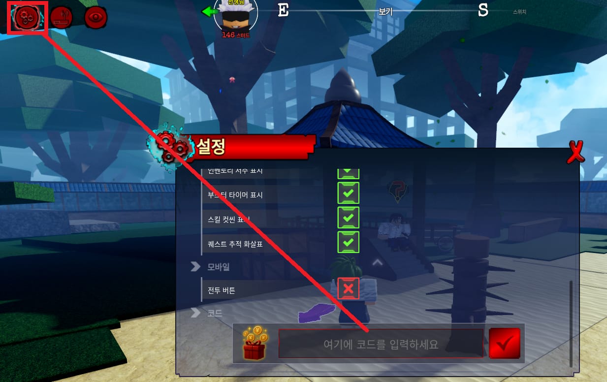 4. 이곳에서 코드를 복사 붙여넣은 뒤 ✔체크를 누르면 즉시 보상이 지급됩니다.