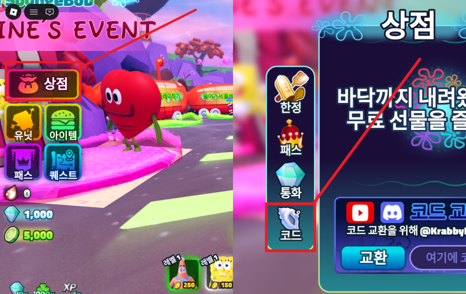스폰지밥 타워디펜스 코드 입력방법