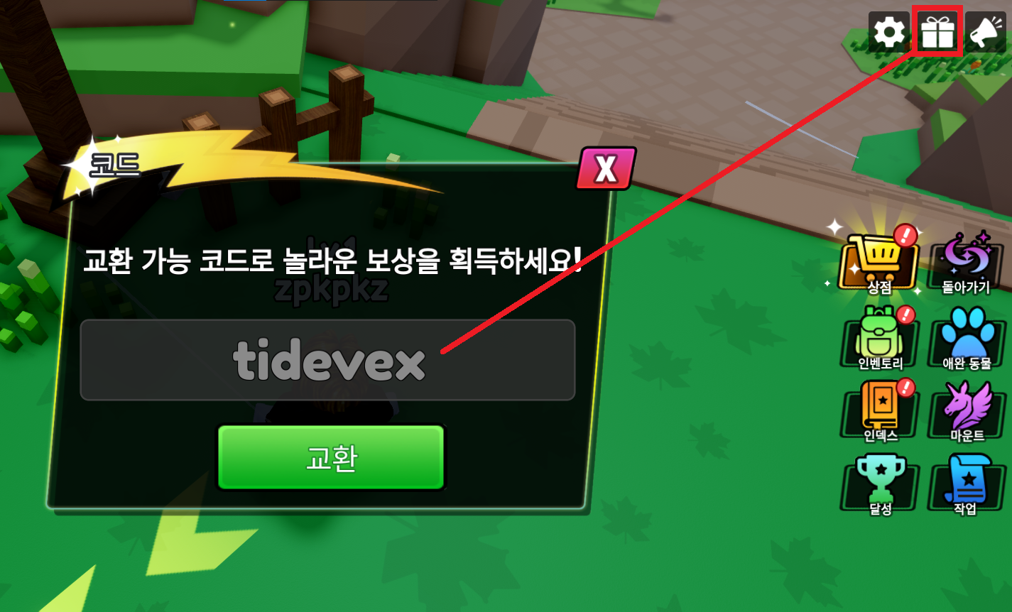 2. 우측상단 선물 아이콘 클릭.
