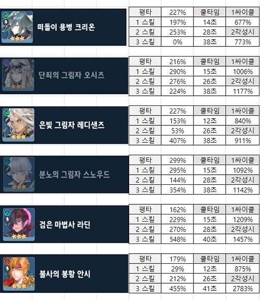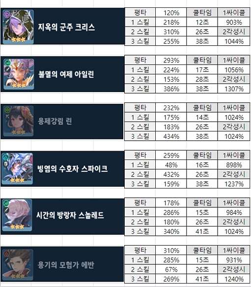 9. 세븐나이츠 레볼루션 3성 영웅 데미지 표