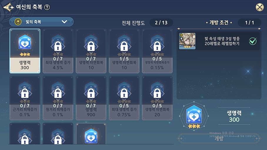 이후 태생 2성을 3성으로 만들어서 승급 재료로 사용하면 축복에서 생명력을 더 당길 수 있다.