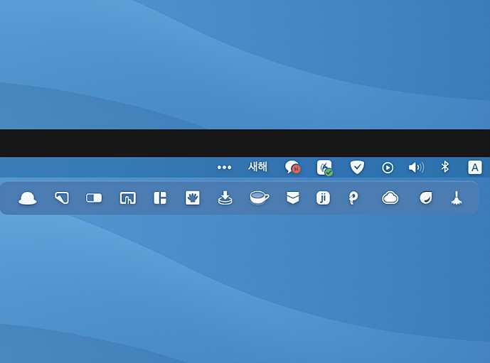 메뉴 막대 관리 앱 여러 앱을 설치하다 보면 메뉴 막대에 수많은 아이콘으로 가득 차 있는 것을 볼 수 있다. Bartender를 통해 메뉴 막대 아이콘을 숨기거나 아이콘 위치를 옮길 수 있다.