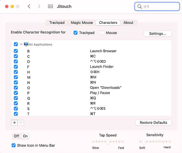 트랙패드 활용성을 한 층 더 높여주는 트랙패드&마우스 제스처 사용자화 앱. 트랙패드&마우스 제스처를 활용해 앱 실행부터 복사, 붙여넣기, 창 닫기, 탭 이동, 창 크기 조절 등을 할 수 있다. 예를 들어 알파벳 제스처로 새로운 탭을 생성하거나, 두 손가락 터치로 탭을 전환해 매우 편리한 웹서핑을 즐길 수 있다. 자신만의 제스처를 잘 만들어두면 작업 효율성에 매우 큰 도움이 된다. 최근 2년 동안 업데이트가 없어 M1 칩 맥북 또는 앞으로 출시될 운영체제에서 지원이 안 될 수 있다. 후속 버전이 꼭 나왔으면 하는 매우 추천하는 앱이다.