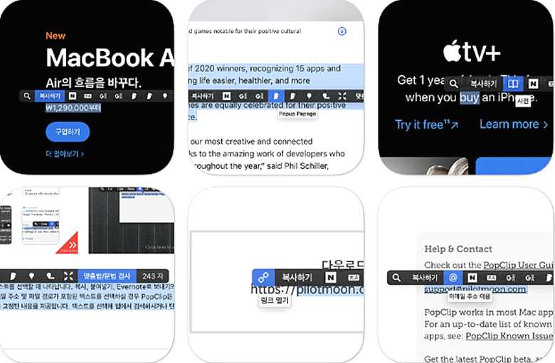 - PopClip 공식 다운로드: https://apps.apple.com/kr/app/popclip/id445189367?mt=12