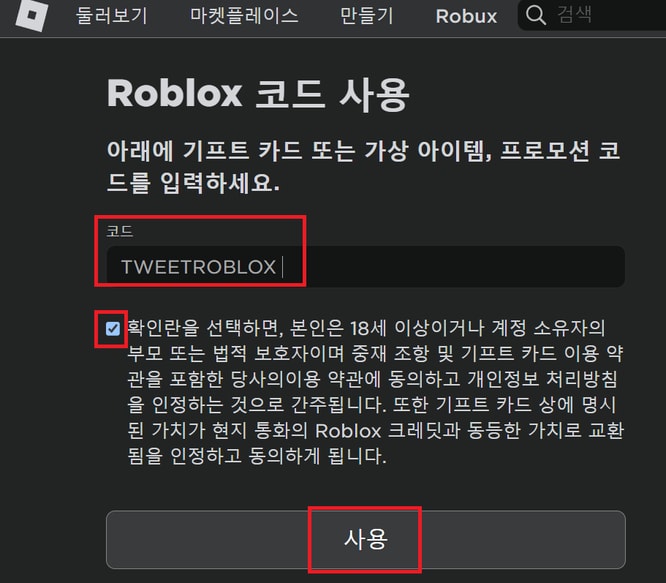 로블록스 프로모 코드 입력 방법