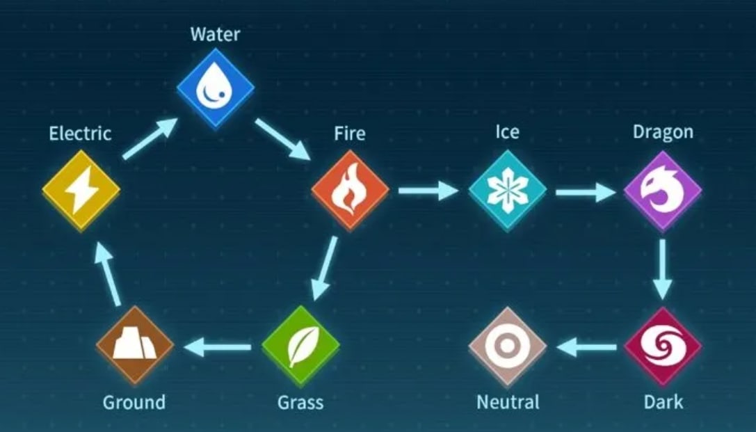 ※ 유일하게 화염 속성만 2가지 (얼음 + 풀) 이기는 상성을가지고 있습니다.