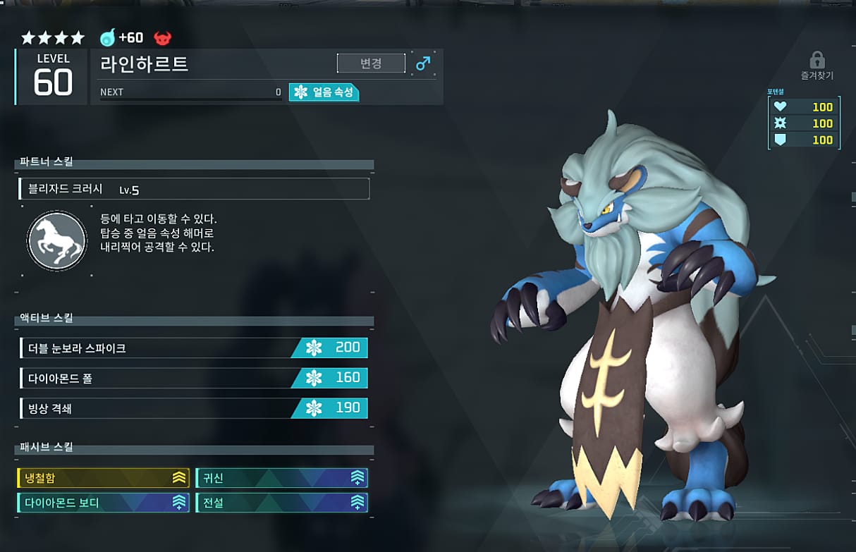 | 빙제 | 얼음 속성 공격 피해 증가 20.0% | 빙천마 |